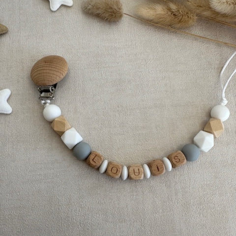 Attache tétine blanc & gris