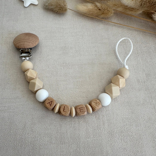 Attache tétine beige & blanc