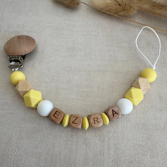Attache tétine jaune & blanc