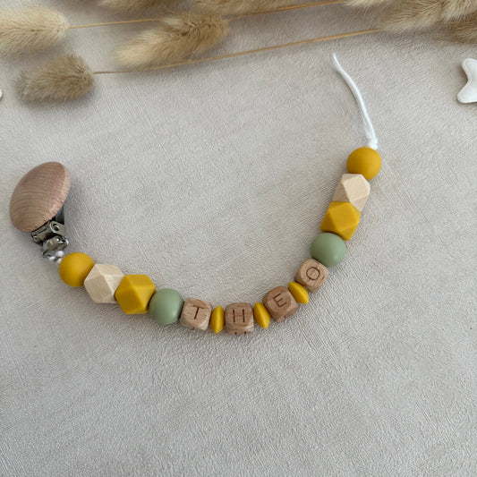 Attache tétine moutarde & vert