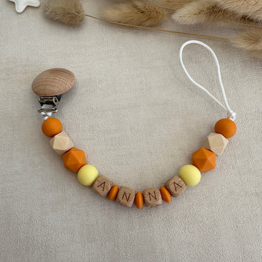 Attache tétine orange & jaune