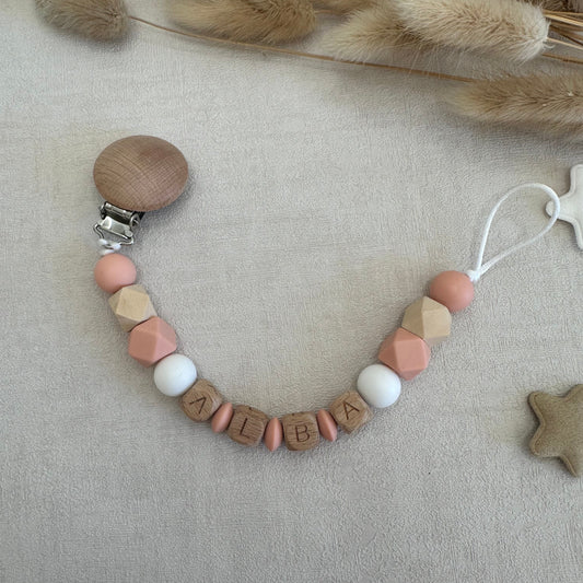 Attache tétine corail & blanc